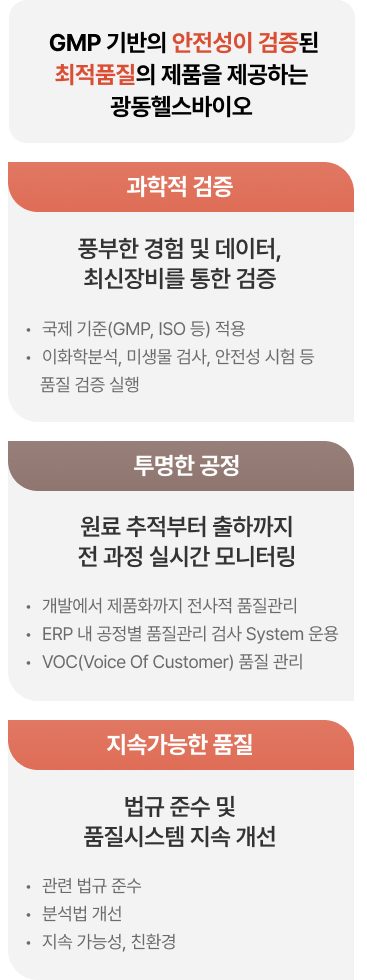 광동헬스바이오는 국제식품안전협회(GFSI, Global Food Safety Initiative)의 승인을 받은 글로벌 표준 시스템을 구축·운용하고 있으며